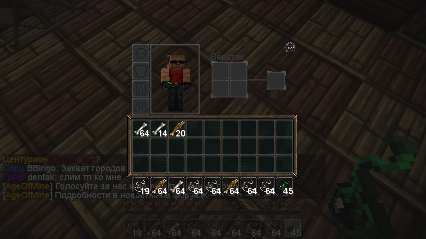 2.2-3 реальных дня 3.Собрал перьем примерно набил 4 стаков костей, собрал 3 стака гнили, паутины 6 стаков! 4. картинки снизу прекреплены 5.Просьба кузнеца скрафтить стрел и брони для следующего захода Прикрепления: